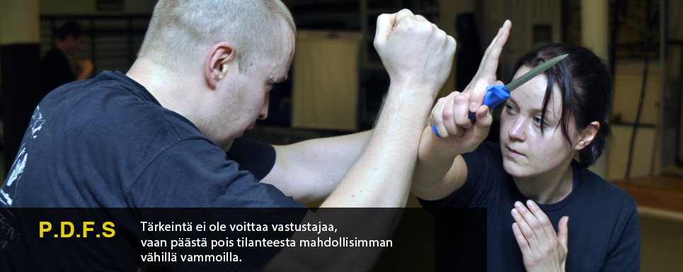 Sinulla ei tarvitse olla aiempaa kokemusta muista lajeista. P.D.F.S. ei ole kamppailu-urheilua. Siinä ei kilpailla eikä harjoituksissa pyritä opettelemaan toisen voittamista, vaan tilanteista selviytymistä mahdollisimman vähäisin vammoin. Itsepuolustus eroaa kamppailu-urheilusta mm. siten, että itsepuolustuksessa ei tarvitse välttämättä voittaa. Kadulla ei jaeta mitaleja eikä sijoituksia, eikä siellä päde myöskään säännöt. Tekniikat opetellaan porrastamaan tilanteen vakavuuden ja hyökkääjän vaarallisuuden mukaan. Tekniikat on valittu niin, että ne tukevat toisiaan ja toimivat sekä paikaltaan että liikkeestä tehtynä. Puolustautuja pystyy tekemään tekniikat myös itseään isokokoisemmalle vastustajalle. P.D.F.S. -treenejä on aamuin ja illoin, joten voit harjoitella vaikka teet vuorotyötä tms. Alkeiskurssia voi käydä aamulla tai illalla tai vaikka molemmissa treeneissä, miten sinulle sopii.